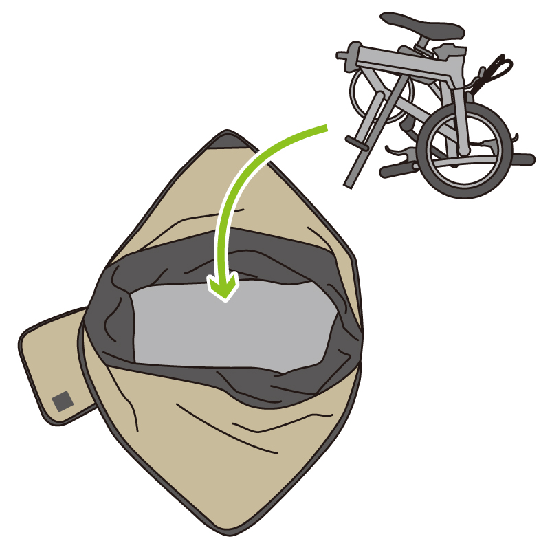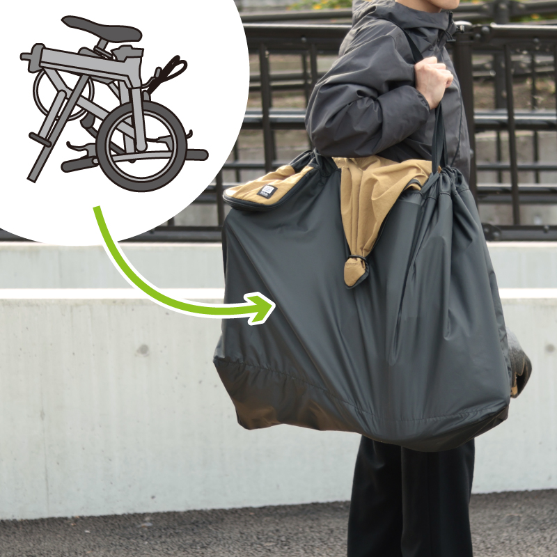 自転車を折り畳んだら、あとは袋に入れて持ち上げるだけ!誰でも簡単に収納できます。