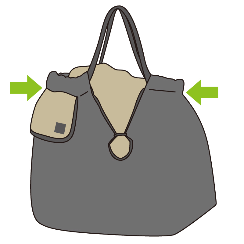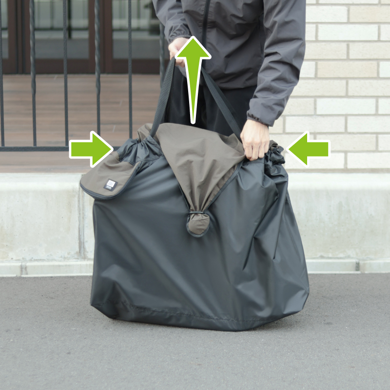 持ち上げるだけで口が自然に絞られ、自転車にぴったりフィットします。