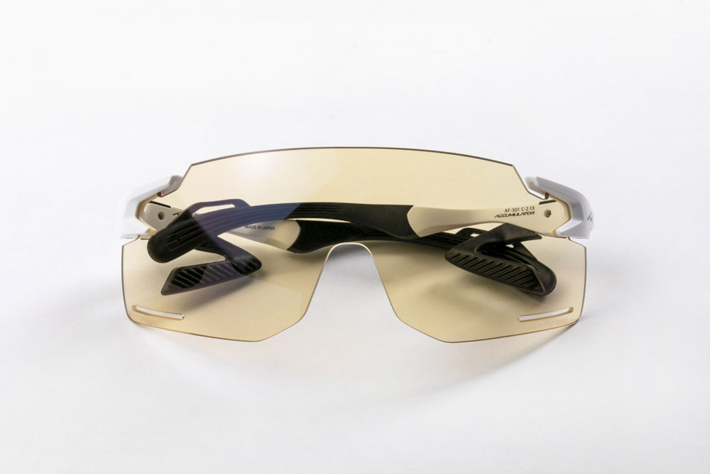 眩しさの原因と言われているブルーライトを50%カット、レンズ面積も大きく目標物を追いきれる視野の広さになります。
